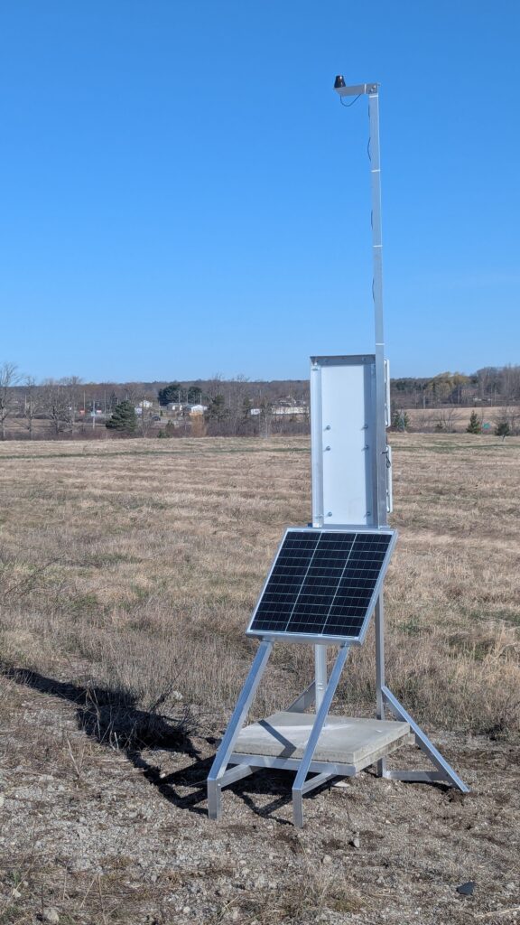 The structure uses aluminum for corrosion resistance and strength. The solar panel angle is set for real seasonal performance. The enclosure layout separates power and control cleanly so it is easy to service.